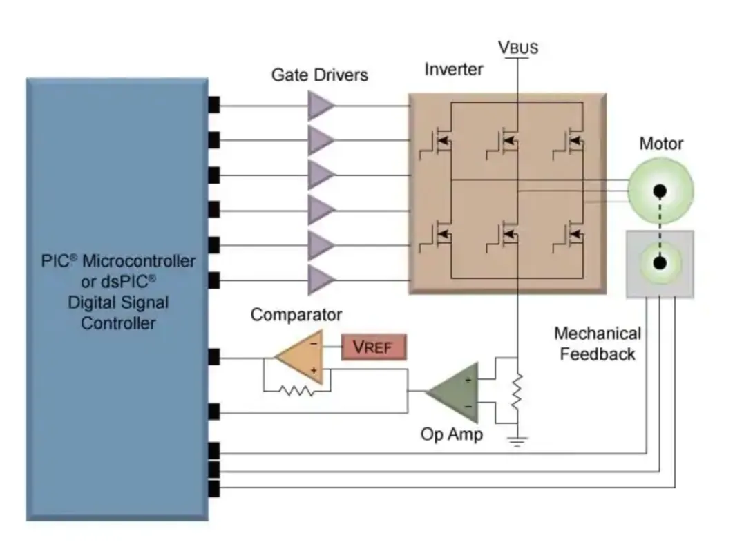 Microchip 无刷直流电机应用还包括防锁刹车系统、磁盘驱动器伺服、油门控制等。