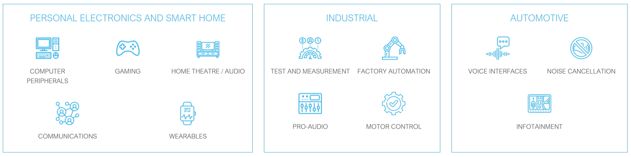 凭借其独特的多线程、多核微架构,xcore.ai 提供了世界领先的具有可预测性的可编程能力,这对于需要极高实时性的 DSP 应用来说至关重要。xcore 的独特架构可确保系统的不同部分互不干扰,从而提供 DSP 系统(尤其是支持多采样率的系统)所需的稳健性、低延迟和可确保的执行时间。