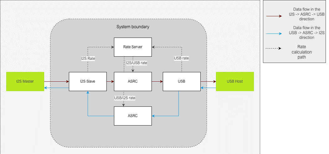 I2S到USB接口,支持的异步采样率介于44.1 kHz – 192 kHz