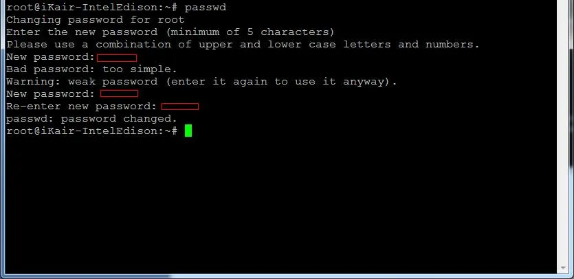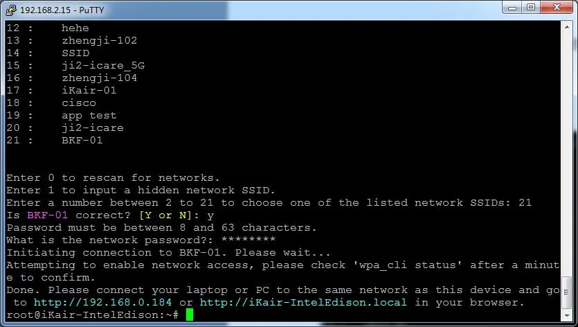 7. Edison提供网页端及命令两种方式配置其初始信息,网页端登录地址为192.168.2.15。以下以命令配置方式为例。