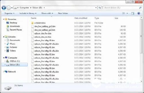 4、解压缩下载的最新的Edison 固件到Edison上(D:)