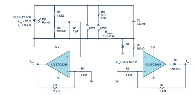 <strong>用于PV电池板模块的I-V扫描测试电路</strong>