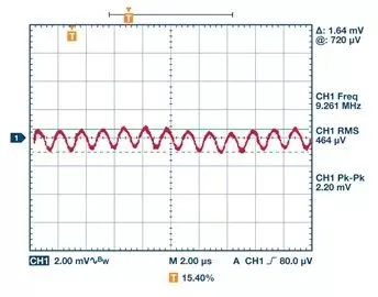 <center><img src="http://mouser.eetrend.com/files/2020-04/wen_zhang_/100048575-94391-8.jp…; alt=“图5. 有额外滤波器的VOUT(使用1000倍前置放大器进行测量)”></center><center><i>图5. 有额外滤波器的VOUT(使用1000倍前置放大器进行测量)</i></center>