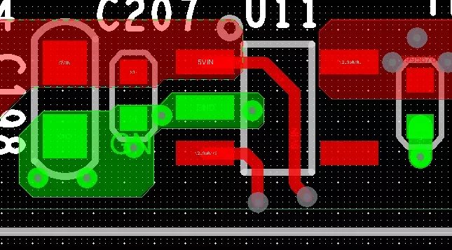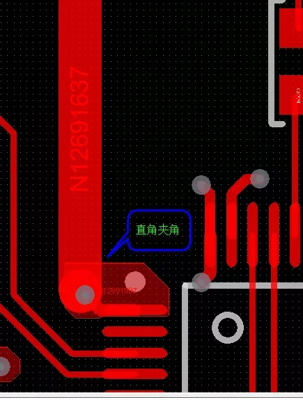 3.尽量用覆铜替换覆铜+走线的模式,后者常常产生一些小尖角和直角使用覆铜替换走线: