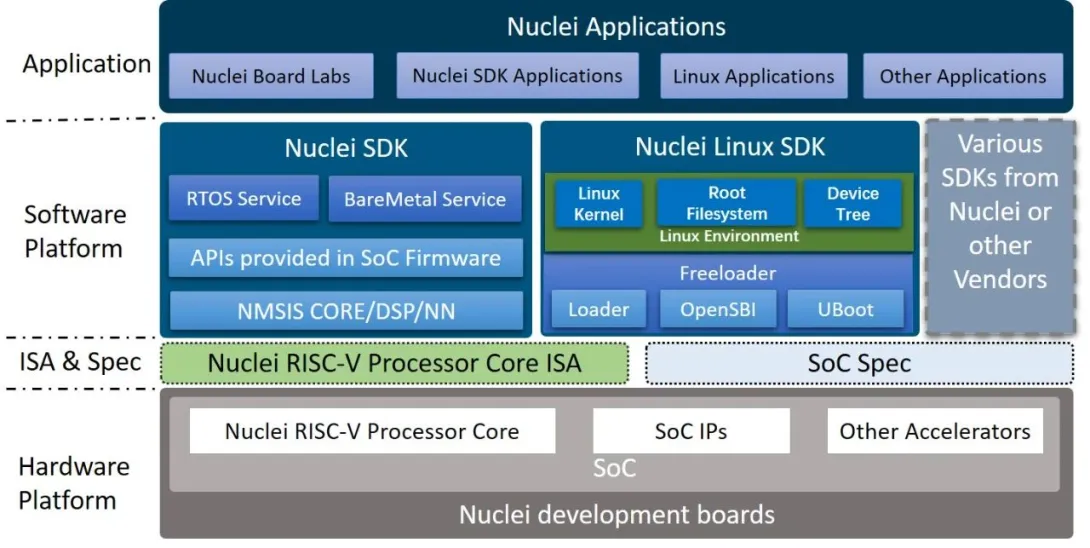 <p>同时,Nuclei Linux SDK(包括OpenSBI、U-Boot等核心组件)在Nuclei UX900处理器上的移植和驱动开发已经完成,能够启动并稳定的运行,为客户的深度开发和定制打下坚实基础。</p>