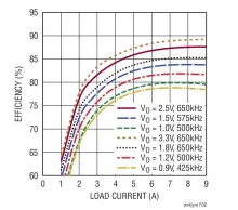 该器件具有4.5V至17V的宽输入电压范围和0.5V至5.5V的输出电压范围,并在整个温度范围内提供了±0.5%的DC准确度。能够以可编程摆率和排序延迟时间对LTM4675的电源输出进行数字调节、裕度调整以及上电/断电操作。接通时间最大值为70ms。遥测回读参数包括V<sub>IN</sub>、I<sub>IN</sub>、V<sub>OUT</sub>、I<sub>OUT</sub>、温度、运行峰值、正常运行时间、故障和报警。在9A负载条件下,整个温度范围内的电流回读准确度为±2.5%。