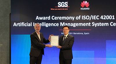 近日,华为技术有限公司通过ISO/IEC 42001 人工智能管理体系标准认证,该认证由国际公认的测试、检验和认证机构SGS审核并颁发证书。