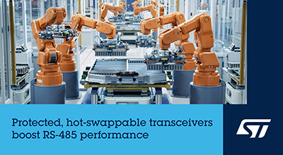 意法半导体推出了ST4E1240 RS-485 收发器芯片。新产品具有40Mbit/s的传输速度和PROFIBUS兼容输出,以及瞬变和热插拔保护功能。