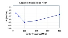 如果一个时钟的载波频率下降了N倍,那么我们预计相位噪声会减少20log(N)。例如,每个除以因子2的除法应该导致相位噪声减少20log(2)或大约6dB。这里的主要假设是无噪声的传统数字分频器。