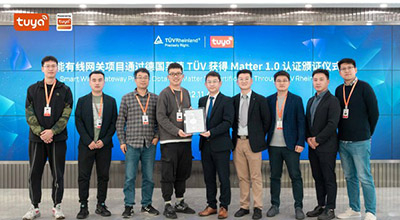 2022年11月4日,国际独立第三方检测、检验和认证机构德国莱茵TUV大中华区为全球化IoT开发平台服务商杭州涂鸦信息技术有限公司的智能网关产品Smart Wired Gateway颁发了Matter 1.0认证证书。