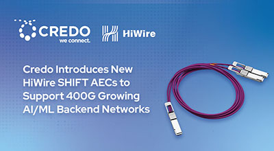 Credo很高兴宣布,其专门为解决400G AI/ML后端网络与机架顶部(TOR)交换机间的连接而推出HiWire有源电缆(AEC)的新系列产品。