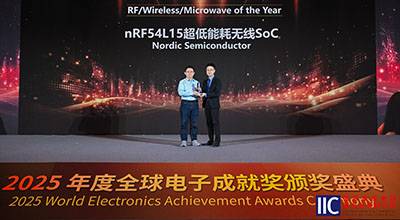 在由全球电子技术领域知名媒体集团 AspenCore 主办的 “国际集成电路展览会暨研讨会”(IIC Shenzhen 2025)颁奖盛典上,Nordic Semiconductor 旗下 nRF54L15 超低功耗无线系统级芯片(SoC)凭借在射频技术创新、多协议兼容性及超低功耗表现上的卓越实力,