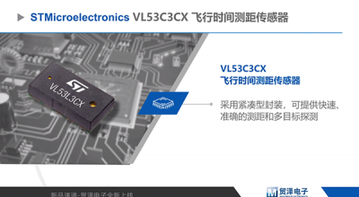 STMicroelectronics VL53L3CX飞行时间测距传感器嵌入ST的第三代FlightSense技术。该传感器将高性能接近和测距传感器与多目标距离测量和自动污点校正结合在一起。微型可回流焊接封装集成了一个光子雪崩二极管(SPAD)阵列。物理红外滤波器采用各种玻璃罩窗口,可在各种环境照明条件下实现最佳测距性能。