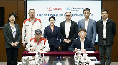 4月11日,国际独立第三方检测、检验和认证机构德国莱茵TÜV大中华区(简称"TÜV莱茵")与长城汽车股份有限公司(简称"长城汽车")签订座舱显示健康护眼战略合作协议。